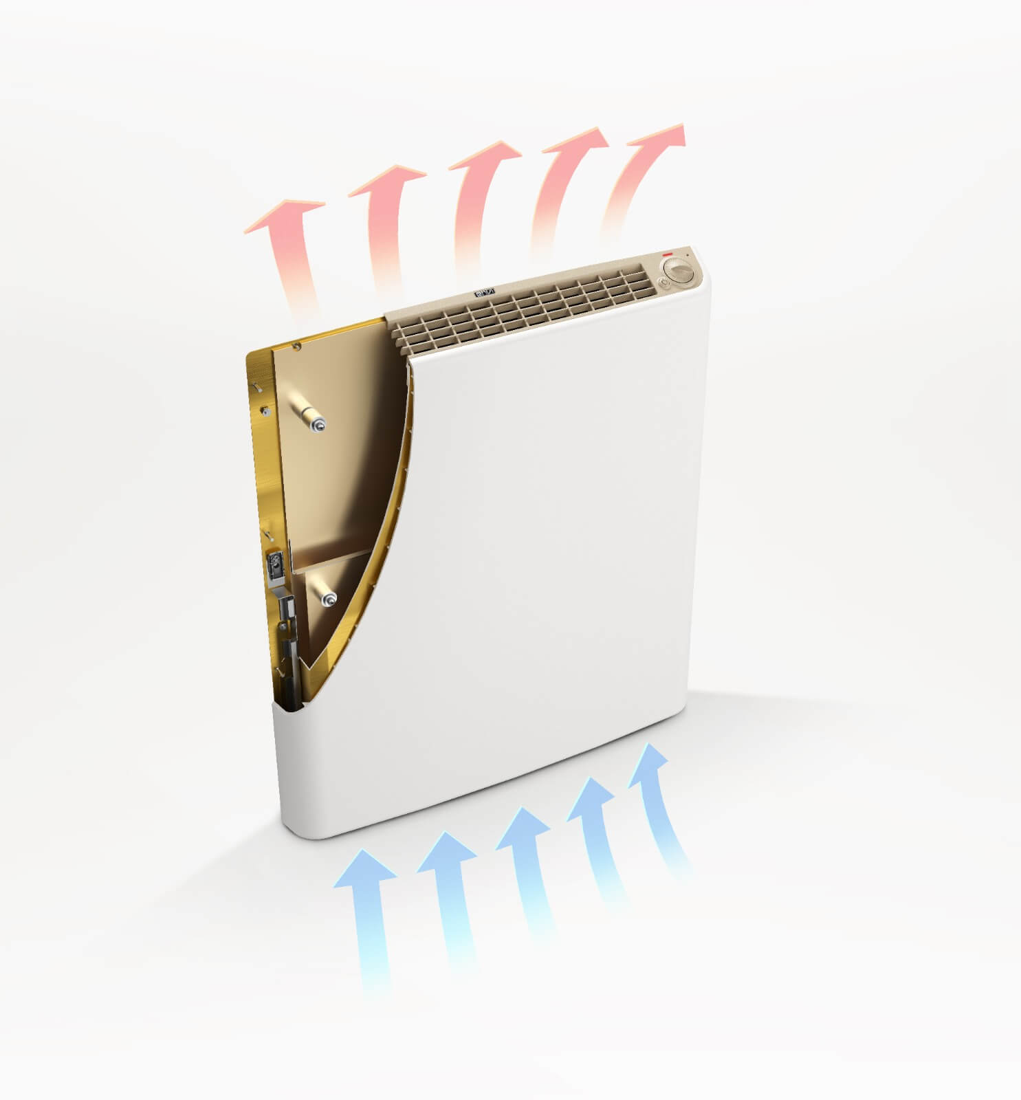 The dual-stack convection technology featured in the Envi was born out of years of research and development to find a solution to effectively and safely heat a room using the smallest possible, amount of electrical heating energy.